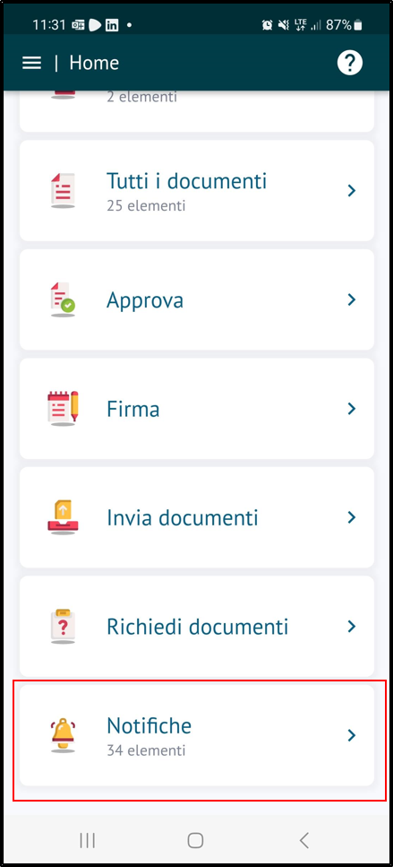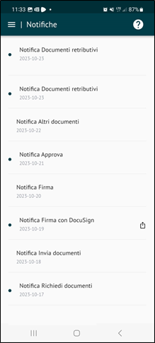 Le notifiche evidenziate con un "pallino" sono ancora da leggere.